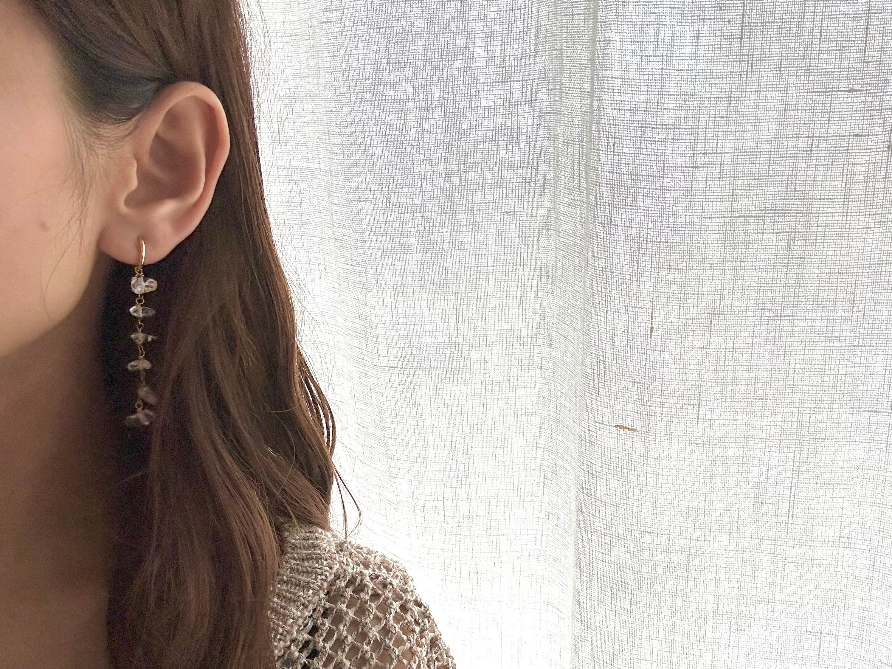肌に直接触れるピアスフックは上質な14金ゴールドフィルドを使用しています