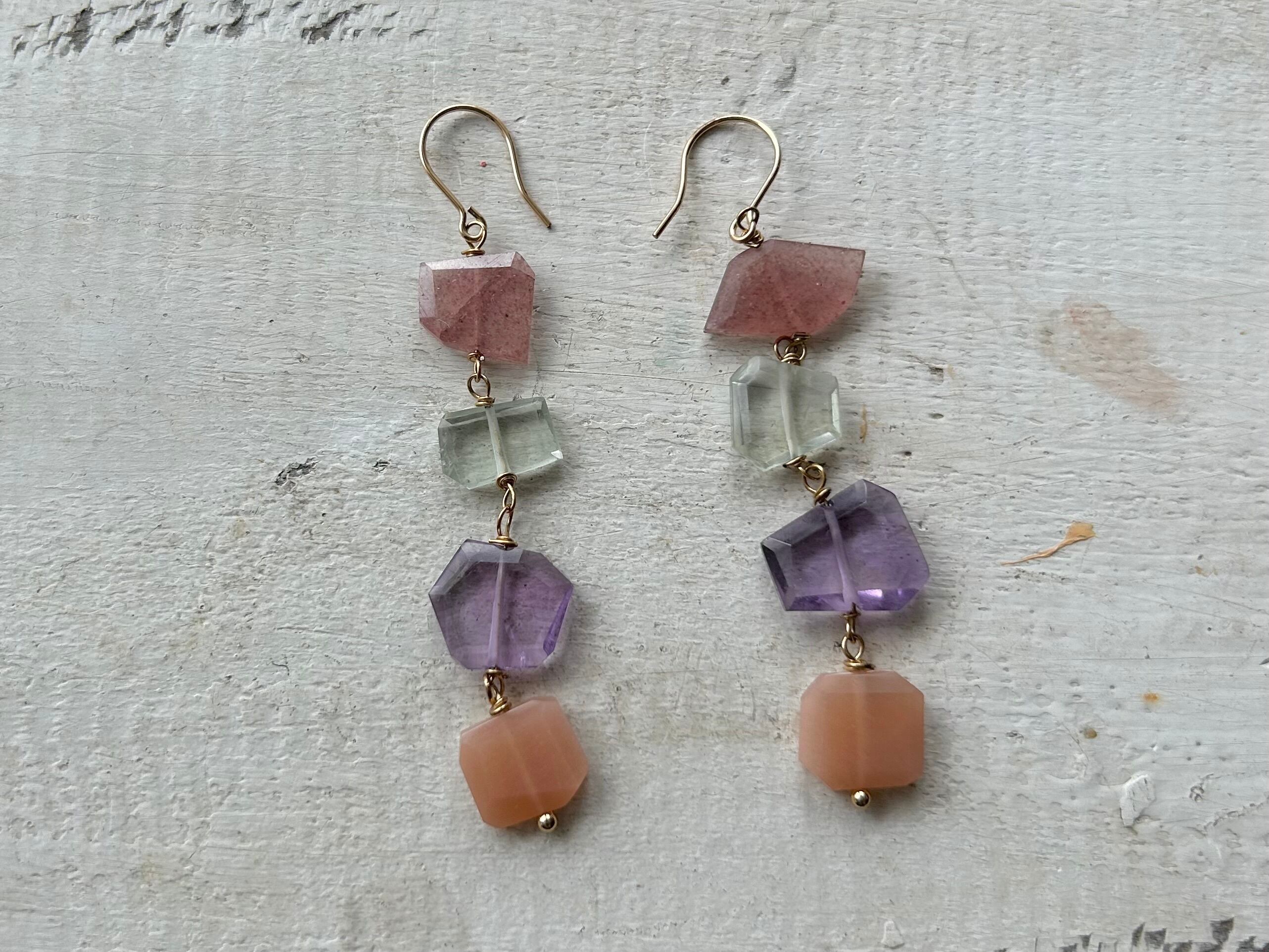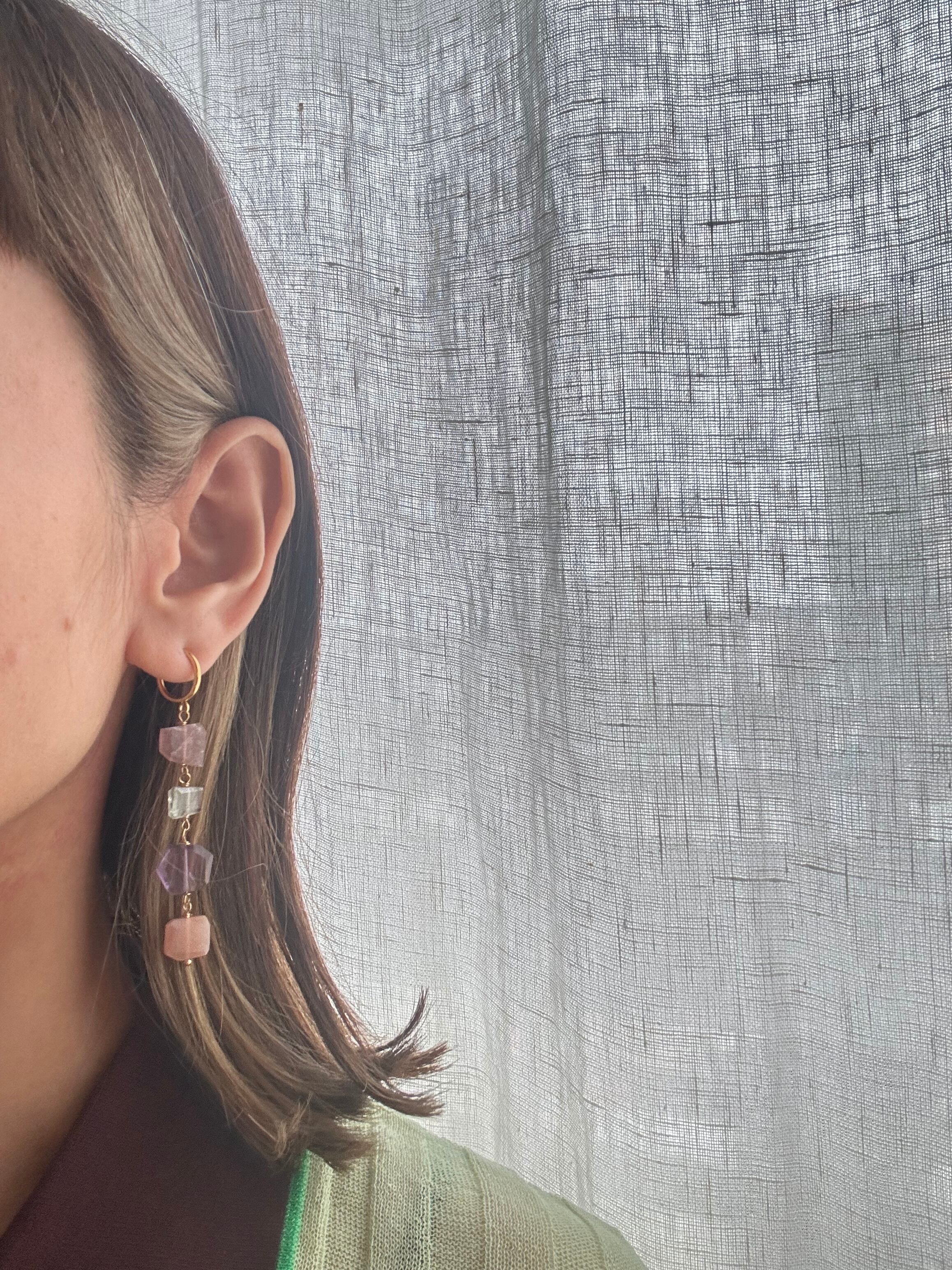 天然石をぜいたくに使ったロングピアス